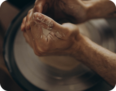Гончарный круг — техника, требующая концентрации: она идеально подходит для тех, кто любит ровные строгие формы. Работать с глиной на гончарном круге увлекательно, только вам потребуется немного времени, чтобы привыкнуть к этой технике. Но не переживайте, всё обязательно получится, ведь рядом будет чуткий мастер!
